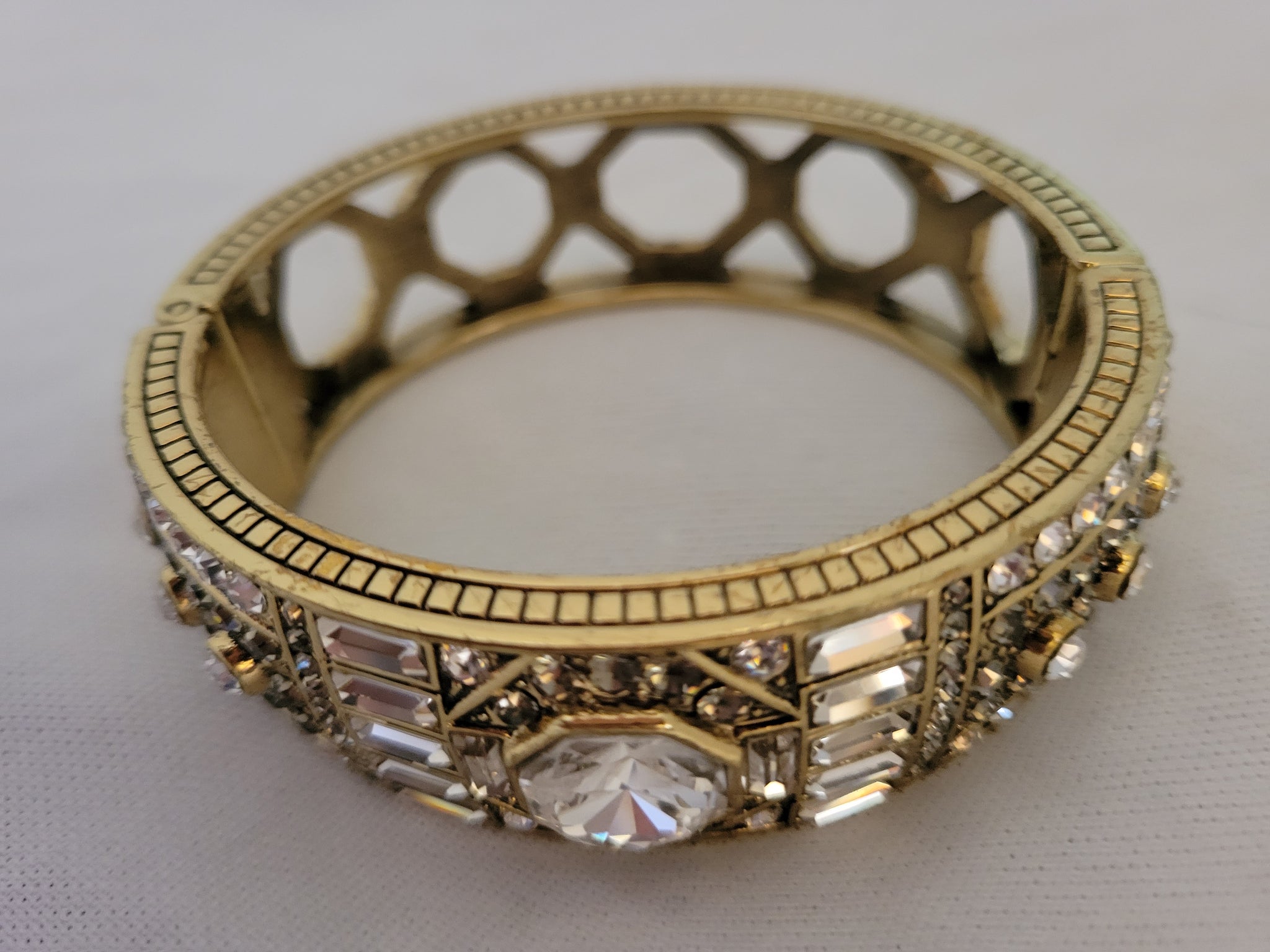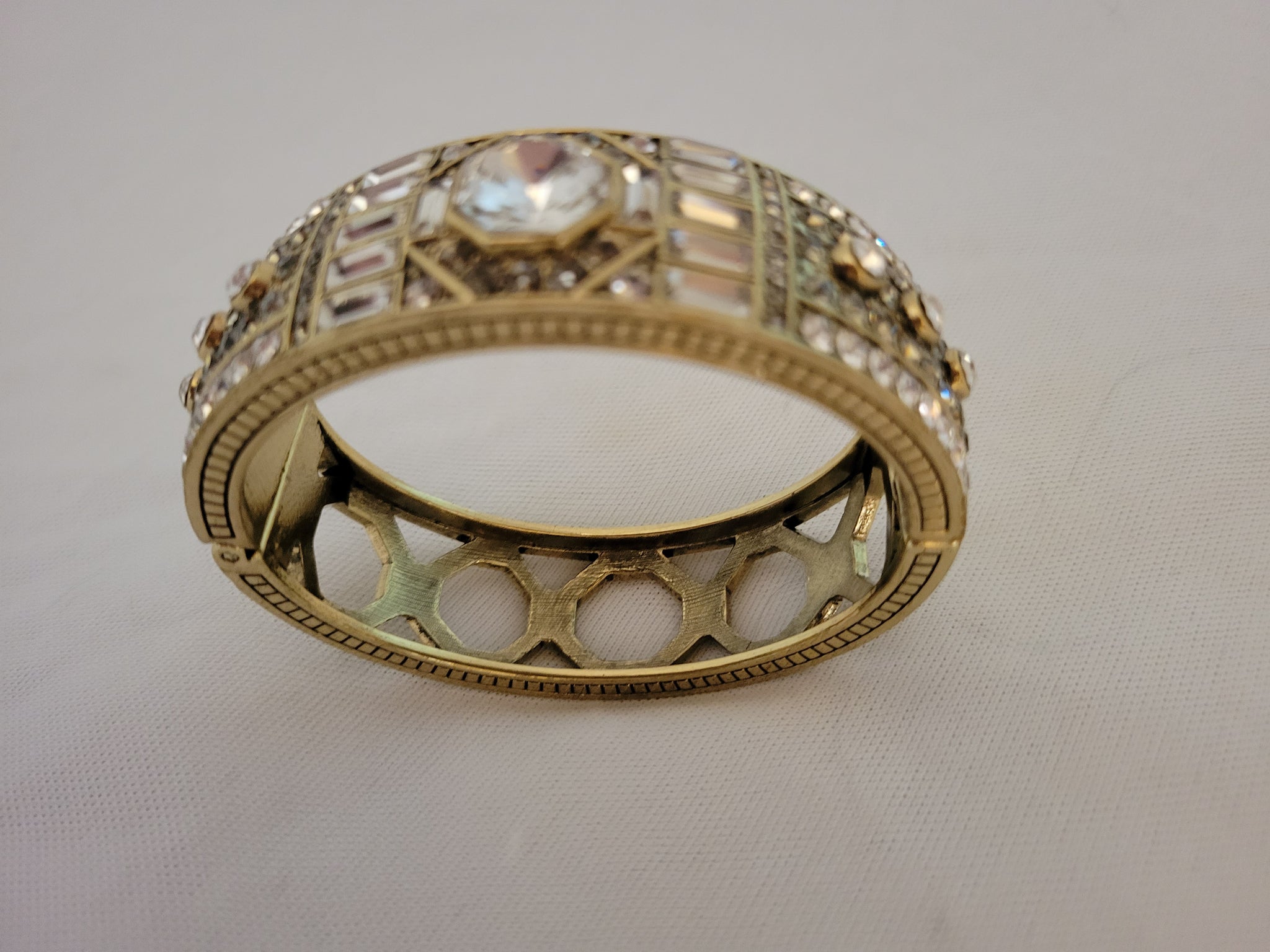 Heidi Daus Multi-Facet White Crystals Within A 2" Wide Cuff Octagon Back Design Lavish Bracelet. A Real Beauty!